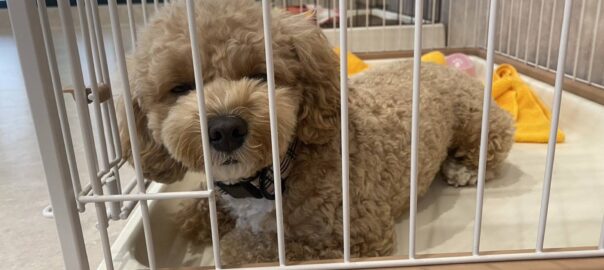 初めてのお泊まりの前に お試しデイサービスに来てくれました。 お家ではケージに入るのが少し苦手とのこと。 calmeでは、お泊まり前に ケージに慣れる時間も作っています。 夜間は安全のため、 わんちゃんたちにはケージで休 … 続きを読む 初めてのお泊まり前の練習に